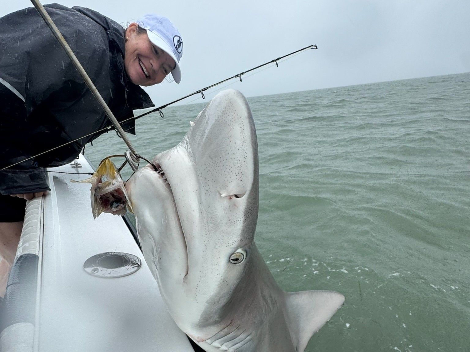 Dusky sharks bring a whole different level of excitement to the table. These sleek predators can stretch 8-10 feet and weigh well over 200 pounds, making them true trophy fish. Duskies prefer the deeper channel edges and are most active during dawn and dusk periods, though they'll feed throughout the day in the right conditions. What sets these sharks apart is their incredible stamina – they'll make long, powerful runs that can strip line off your reel in seconds. The best time to target duskies is during the peak summer months when water temperatures climb and baitfish are thick in the channels.